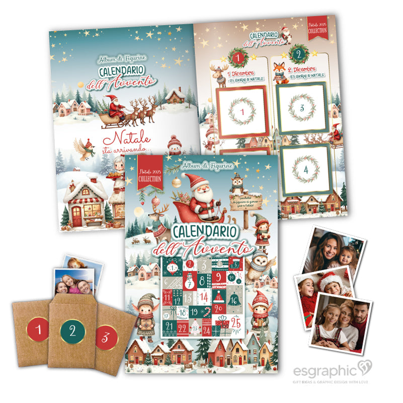L'Album Figurine Calendario dell'Avvento è un regalo simpatico e originale. Un album divertente e colorato, comprensivo di 48 figurine, stampate con le vostre foto più belle, che grandi e piccini potranno divertirsi ad attaccare sull'album! Ogni giorno una bustina fino a Natale!